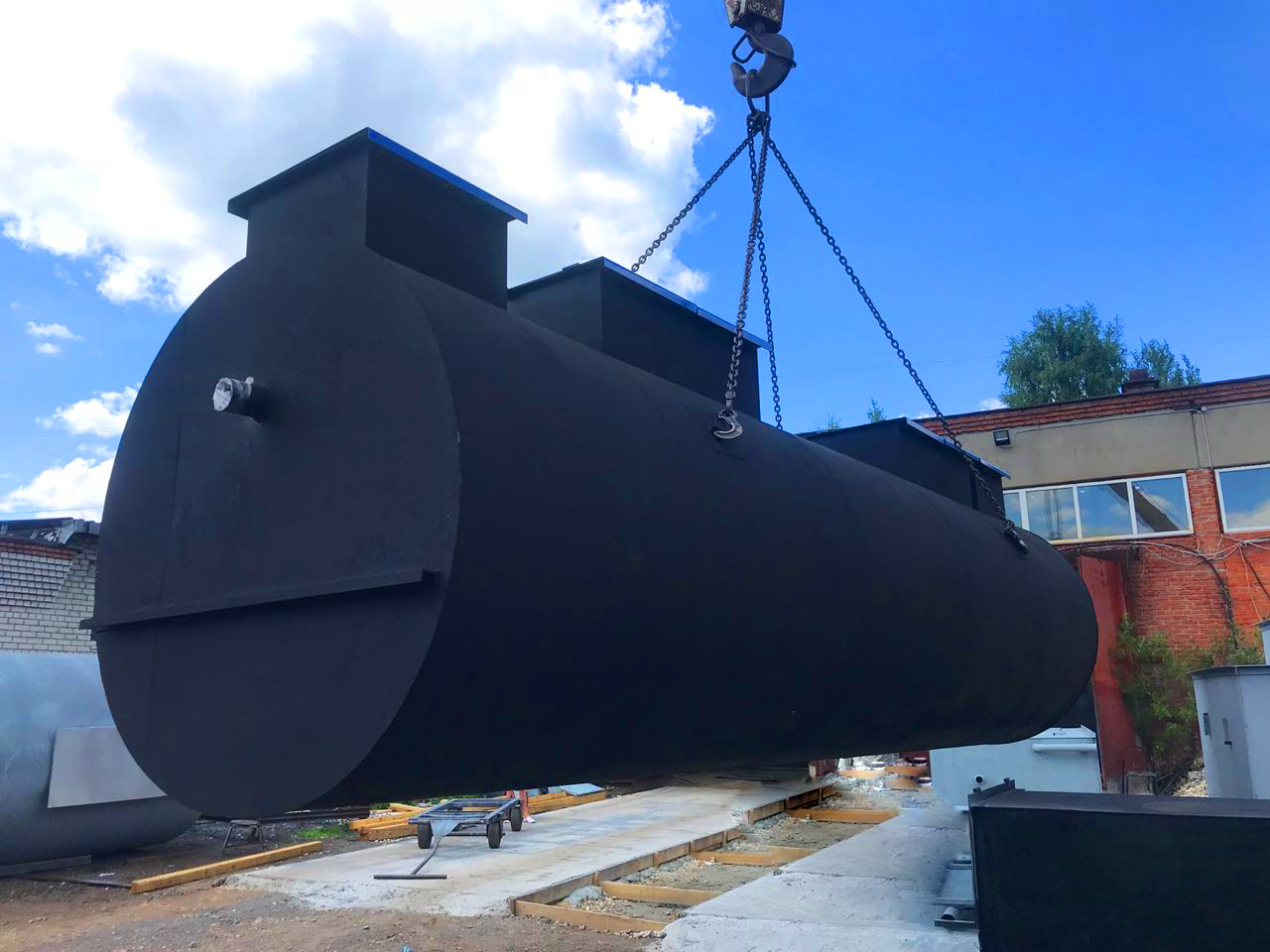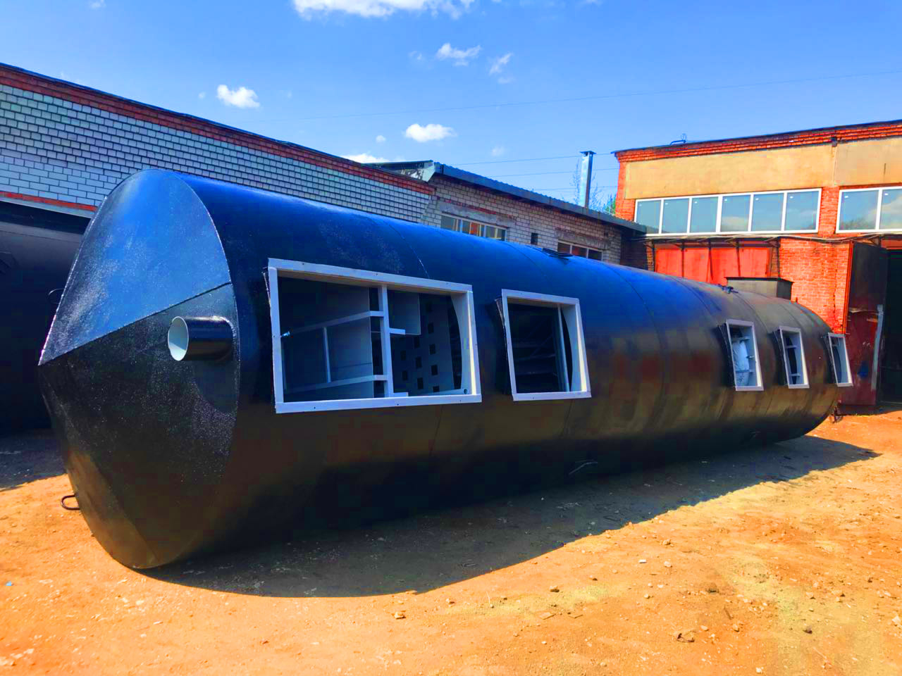 Габариты очистного сооружения: длина 11600 / диаметр 2400 / вес 6900 кг.
