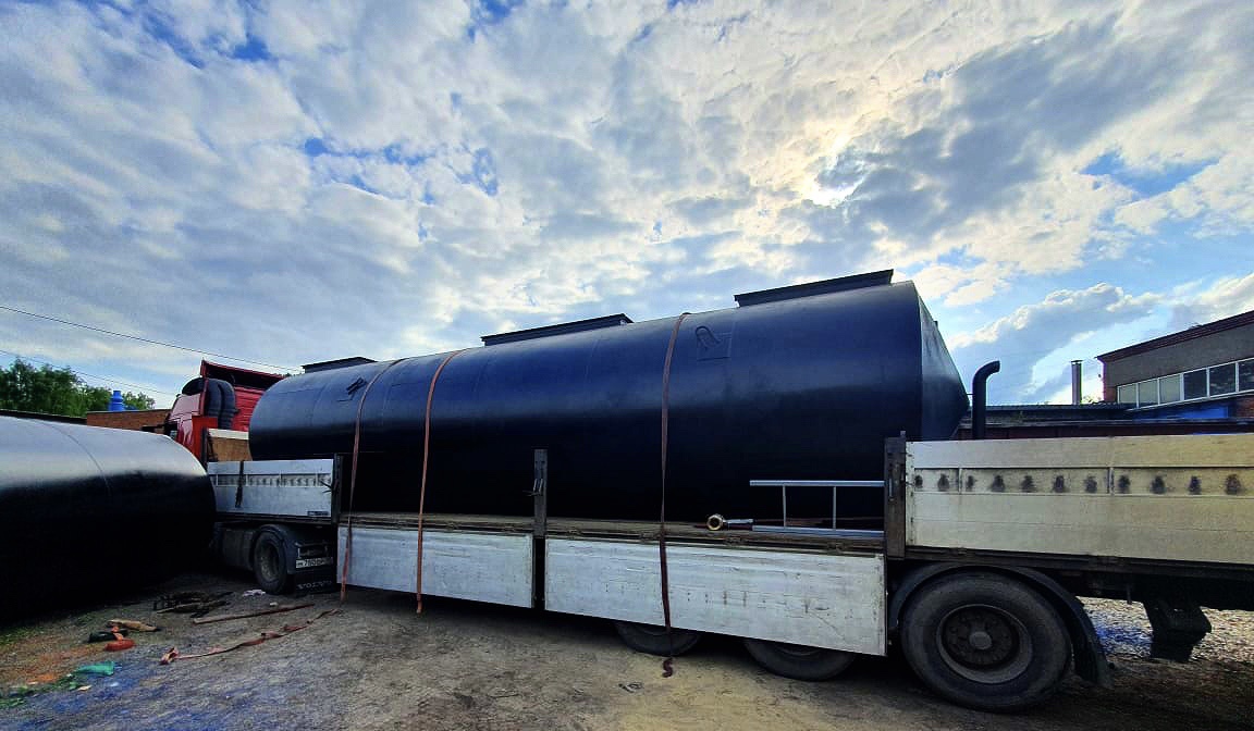 Габариты очистного сооружения: 2 емкости длиной 8400 / диаметром 2400 / весом 9800 кг.